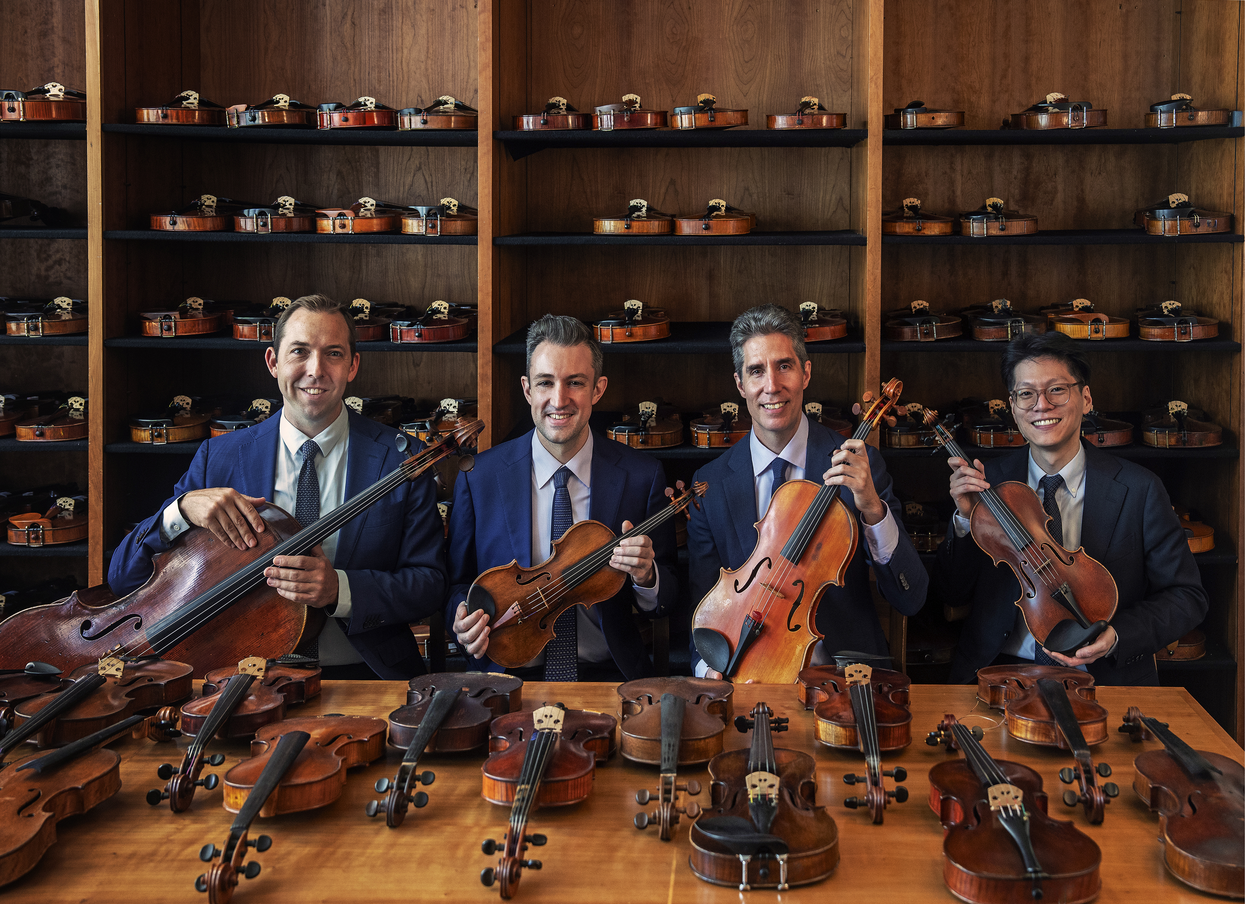 The Escher Quartet has made a distinctive impression throughout Europe, with recent debuts including the Amsterdam Concertgebouw, Berlin Konzerthaus, London’s Kings Place, Slovenian Philharmonic Hall, Les Grands Interprètes Geneva, Tel Aviv Museum of Art, and Auditorium du Louvre. The group has appeared at festivals such as the Heidelberg Spring Festival, Budapest’s Franz Liszt Academy, Dublin’s Great Music in Irish Houses, the Risør Chamber Music Festival in Norway, the Hong Kong International Chamber Music Festival, and the Perth International Arts Festival in Australia. Alongside its growing European profile, the Escher Quartet continues to flourish in its home country, performing at the Aspen Music Festival, Bravo! Vail, Santa Fe Chamber Music Festival, Bowdoin Music Festival, Toronto Summer Music, Cape Cod Chamber Music Festival, OKM Festival, Chamber Music San Francisco, Music@Menlo, and the Ravinia and Caramoor festivals.